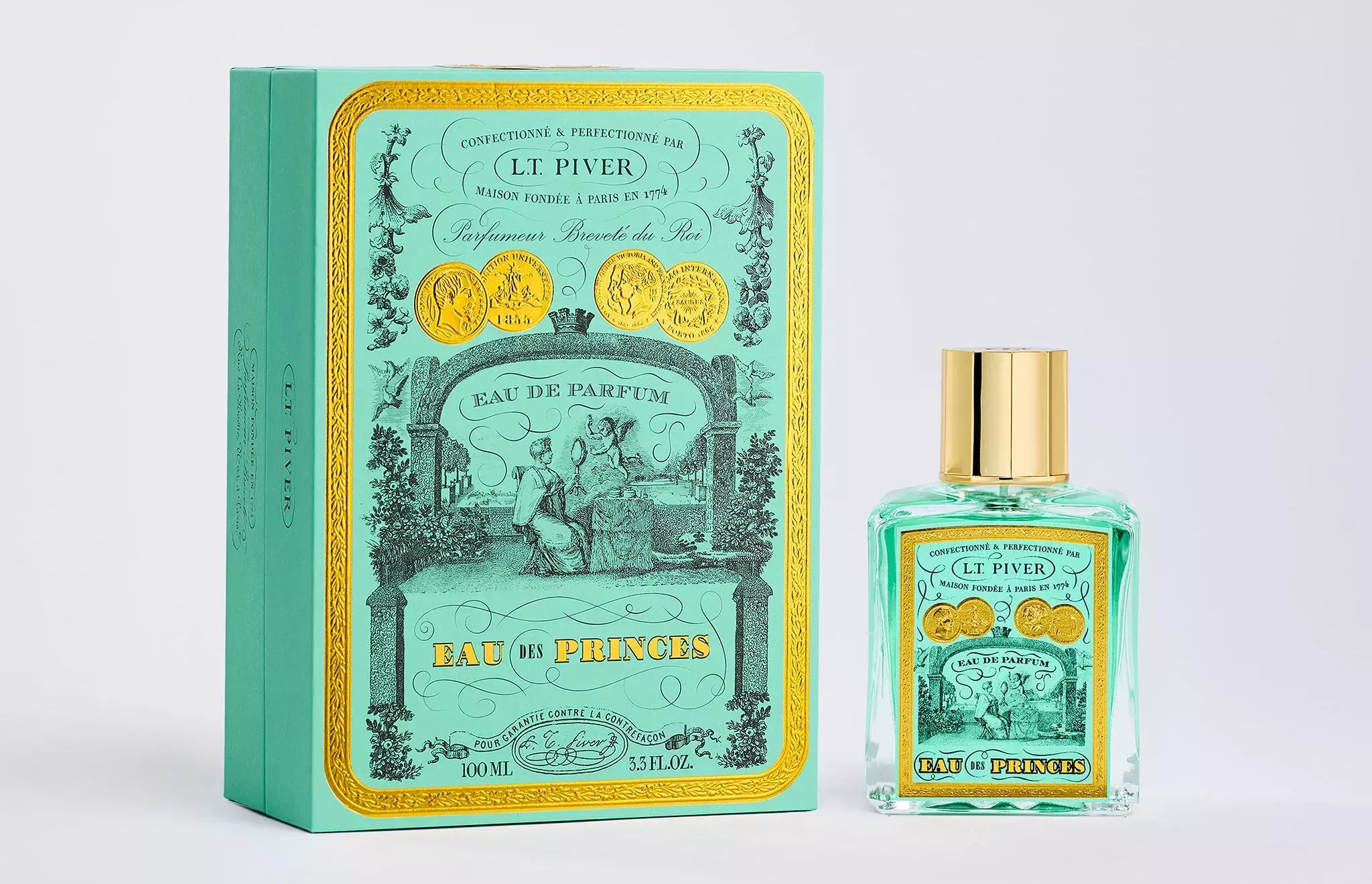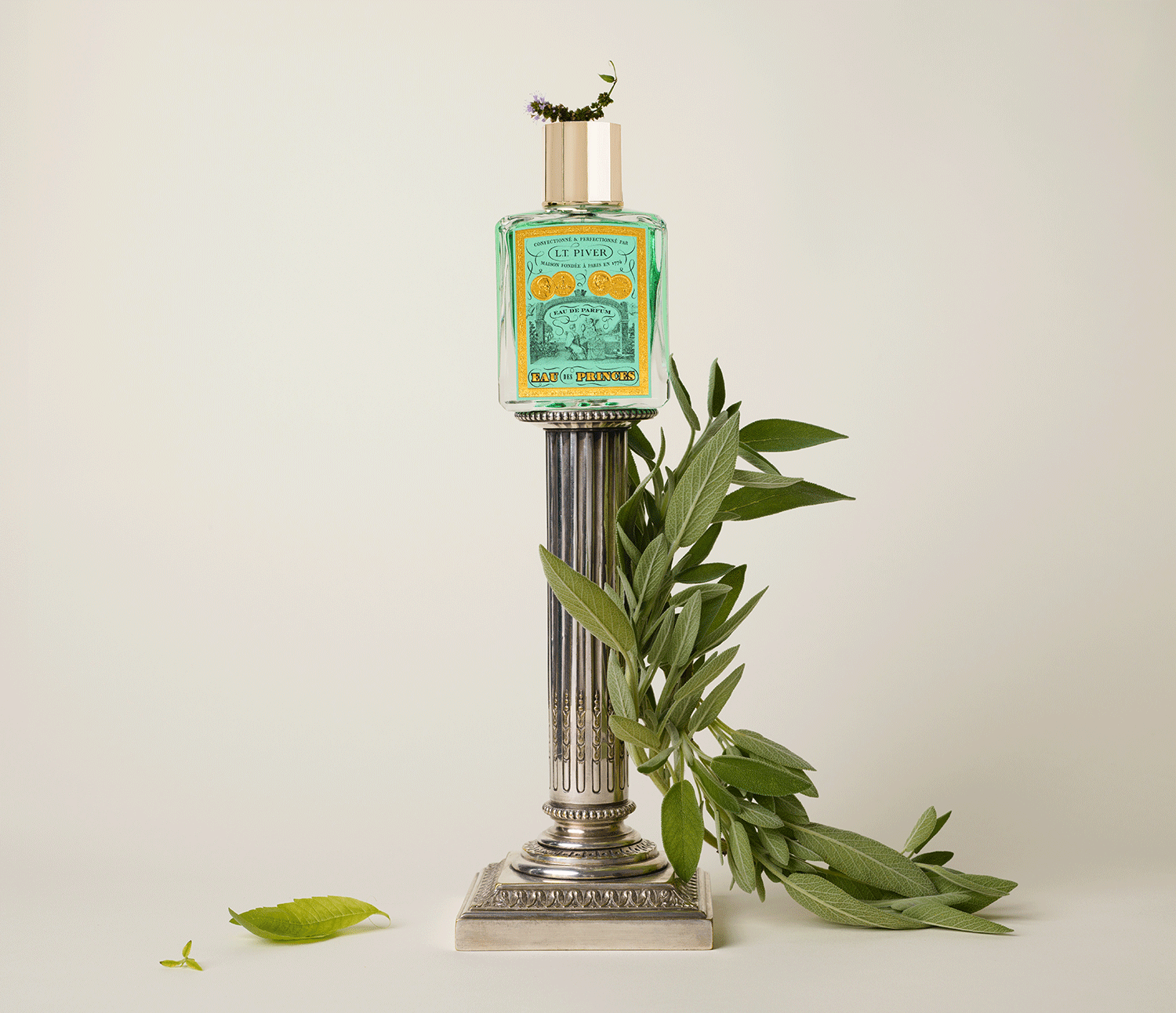 Sa clientèle masculine était celle des hommes de pouvoir — ces dandys raffinés, ces ministres, ces princes et officiers généraux qui portaient le parfum comme un attribut de leur rang. Pour eux, Piver avait conçu l’Eau des Princes : une fragrance d’une fraîcheur mentholée et herbacée sans concession, distinctif du raffinement princier comme l’indique encore aujourd’hui la maison.
